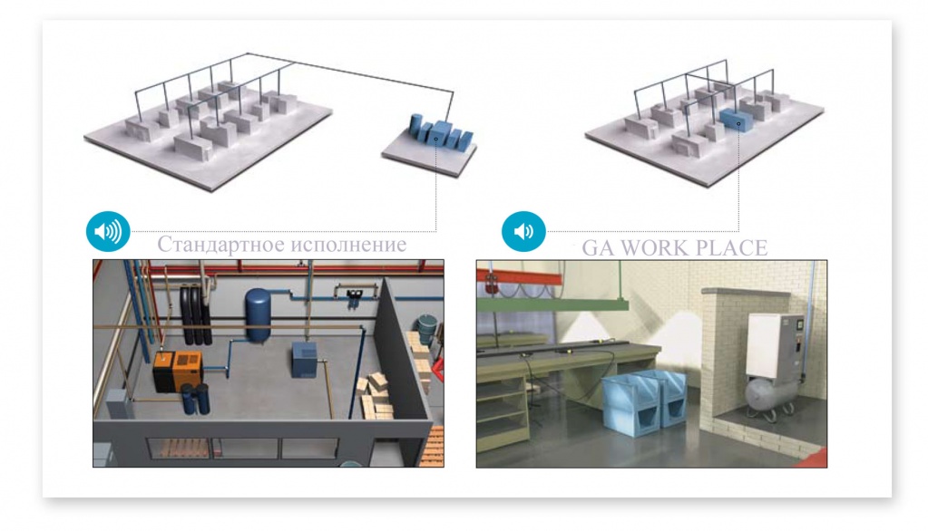 Наличие нескольких исполнений для каждой модели, расширяет возможность выбора для конечного потребителя. Компрессоры Atlas Copco GA11+ могут использоваться в различных условиях и эффективно выполнять свою основную функцию в зависимости от поставленных задач. Жесткая и прочная рама вместе с корпусом защищает внутренние компоненты от повреждения, а также обеспечивает более удобную транспортировку и монтаж оборудования. Принцип включи и работай «Plug and Play» реализован в каждой модификации компрессора, независимо от исполнения и наличия дополнительных функций. За счет правильной компоновки и удобства доступа к внутренним модулям для замены расходного материала или проведения ремонтных работ. Это уменьшает время простоя подключенного оборудования и увеличивает экономический эффект от использования пневматических линий. Вместе с большими интервалами между выполнением обслуживания техники это позволяет добиться увеличения прибыльности всего производства.