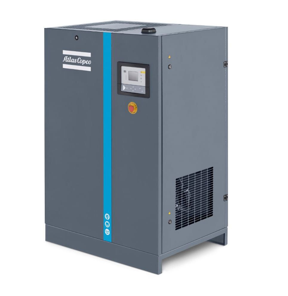 Компрессор Atlas Copco GA18 VSD+ 13FF - маслосмазываемый винтовой, воздушный компрессор с автоматической регулировкой частоты вращения привода. Эта технология позволяет получить высокую производительность и стабильную величину подачи сжатого воздуха за счет проверенной временем конструкции с двумя вращающимися винтами. А применение инновационной системы управления скоростью двигателя позволяет значительно снизить потребление электроэнергии в то время, когда снижается общее потребление воздуха в сети. Это осуществляется в автоматическом режиме и не требует постоянного контроля со стороны оператора. Итоговая экономия может составлять до 50 % электроэнергии от обычного потребления воздушной системы аналогичной мощности. Также в конструкции предусмотрено использование электродвигателя iPM с постоянными магнитами, что ещё больше повышает эффективность экономии ресурсов. Наличие масляного впрыска позволяет увеличить скорость вращения винтов, а это способствует большему объему сжатого воздуха проходить через установку. Продуктивность возрастает при постоянной мощности двигателя компрессора. Наличие тонкой масляной пленки защищает металлические поверхности внутренних полостей от коррозии, а трущиеся элементы не так быстро подвергаются абразивному износу. Отвод лишнего тепла из рабочей зоны также осуществляется вместе с масляными частицами. Смазка обеспечивает более герметичное смыкание поверхностей в процессе сжатия воздуха и препятствует обратной перетечке, что увеличивает КПД компрессора.